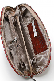 Клатч на одно отделение, закрывающееся на застежку-молнию, с боковым держателем, с ручкой-поводком длиной 390+-10 мм. Цвет фурнитуры - никель. Размеры: