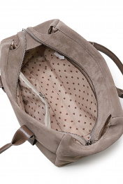 Сумка на одно отделение,закрывающееся на застежку-молнию, с двумя ручками длиной 570+-10мм, со шлевками на ручках, с карманом на задней стенке, закрывающимся на застежку-молнию, с пуклями на дне. Цвет фурнитры-никель. Размеры: