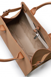 Сумка на одно отделение, закрывающееся на карабин, с двумя короткими ручками длиной 380+-10мм, с двумя боковыми стяжными ремнями, с пуклями на дне. Цвет фурнитурыникель. Размеры: