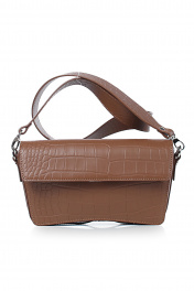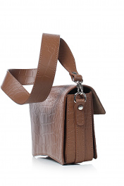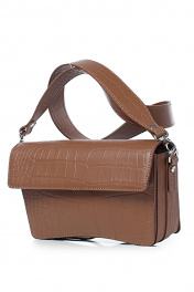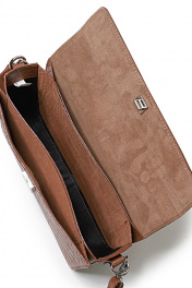 Сумка на три отделения, закрывающиеся клапаном на замок магнитку, с короткой ручкой длиной 180 мм в нижней части корпуса, со съемной ручкой-ремнем длиной 940+10 мм. Цвет фурнитуры - никель. Размеры: 265x135x60