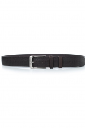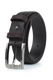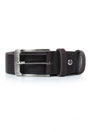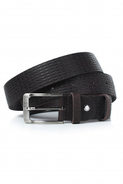Ремень в обрезку, с обработкой изнанки, с декоративным тиснением ремня, с пряжкой и шлевкой на запряжнике, с одной передвижной шлевкой. Цвет фурнитуры-черный никель. Размеры: 1150x3x33