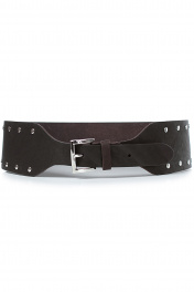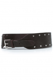 Ремень с декоративными элементами - заклепками, с пряжкой на запряжнике и одной передвижной шлевкой.Цвет фурнитуры - никель. Размеры: 810x3x70