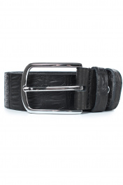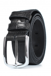 Ремень в обрезку, с обработкой изнанки, с декоративным тиснением ремня, с пряжкой и шлевкой на запряжнике, с одной передвижной шлевкой. Цвет фурнитуры - никель. Размеры: 1150x3x40