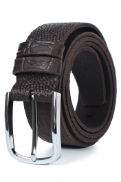 Ремень в обрезку, с обработкой изнанки, с декоративным тиснением ремня, с пряжкой и шлевкой на запряжнике, с одной передвижной шлевкой. Цвет фурнитуры - никель. Размеры: 1350x3x40