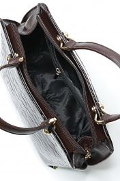 Сумка на одно отделение, закрывающееся на застежку-молнию, с двумя ручками длиной 275+-10 мм, со съемной нерегулирующейся ручкой-ремнем длиной 930+-10 мм, с карманом на задней стенке, закрывающимся на застежку-молнию, с пуклями и декоративными шпеерами на Размеры: 340x210x130
