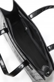 Сумка на одно отделение,закрывающееся на застежку-молнию,с двумя ручками длиной 475+-10мм,с накладкой с заклепками на передней стенке,на задней стенке карман, закрывающийся на застежку-молнию,цвет фурнитуры-никель. Размеры: 365x270x150