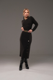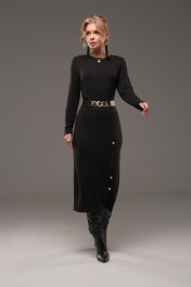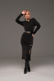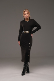Платье из трикотажа с ремнем, прилегающее, с планкой и кнопками Galean Style 960-1 черный