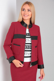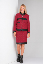Жакет и юбка из текстиля с эко-кожей и потайной молнией Gamma Gracia 170 бордовый-черный-соты