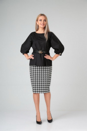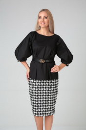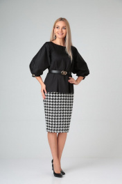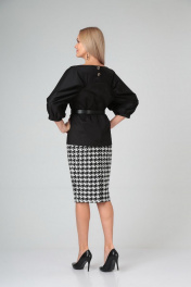 Черный блузон и юбка из хлопка с складками и ремнем Gamma Gracia 514 черный-серый-гусиная-лапка