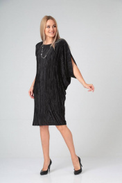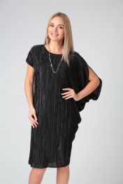 Нарядное черное платье с драпировкой и асимметричным рукавом Gamma Gracia 529 черный
