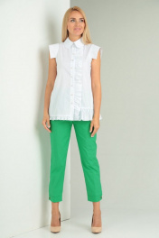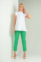 Комплект блуза хлопок и укороченные брюки с разрезами Gamma Gracia 551 белый_зеленый