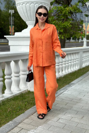 Легкая дышащая рубашка прямого кроя в сочном оранжевом оттенке из 100% умягченного льна. Отложной воротник, длинный рукав с манжетой в рамке, прямоугольная складка на спине, застежка на пуговицы, окрашенные в тон изделия. Отлично сочетается с брюками в тон (арт.120021.059) или в белом цвете (арт.120021.032)