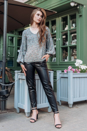 Блуза выполнена из мягкой вискозы полуприлегающего силуэта. По переду нагрудная вытачка, по спинке средний шов, рукав с горизонтальным подрезом со складками и сборкой, по низу рукава манжет на двух навес петлях с двумя пуговицами. Вырез по горловине переда V-образный. Длина р.42-44 - 62см, р.46-50 - 63см, р.52-56 - 64см Длина рукава р.42-44 - 62см, р.46-50 - 62см, р.52-56 - 62см