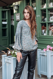 Серый полуприлегающий блуз из вискозы с воротом V-образным GlasiO 13018