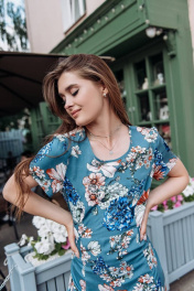 Платье из легкой ткани с подрезом по линии талии имеет расширенный силуэт к низу. По переду и спинке вертикальные рельефы, идущие с проймы. Мягкая сборка по юбке задает особую женственность. Рукав короткий со сборкой в пройме. Длина изделия р.42-44 - 150 см, р.46-50 - 151 см, р.52-56 - 152 см, р.58-62 - 153 см Длина рукава р.42-44 - 18 см, р.46-50 - 20 см, р.52-56 - 22 см, р.58-62 - 24см