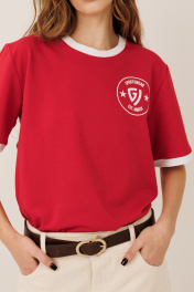 Та самая футболка, которую не хочется снимать. Мы создали идеальный классический крой: в меру свободный, чтобы не стеснять движений, и достаточно аккуратный, чтобы выглядеть уместно даже в деловом образе. Футболка: классический крой умеренный объем стильный принт контрастная горловина и манжеты из кашкорсе Длина футболки по спинке от горловины: 61-63 см Длина рукава: 23-25 см Полуобхват по груди: 42р - 48 см, 44р - 50 см, 46р - 52 см, 48р - 54 см, 50р - 56 см, 52р - 58 см