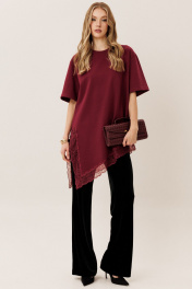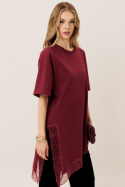 Ассиметричный крой+трендовое кружево = базовая футболка уже не базовая! Футболка: прямой силуэт oversize круглая горловина короткий рукав ассиметричный низ с кружевом Полуобхват груди футболки: 42 р - 56 см, 44 р - 58 см, 46 р - 60 см, 48 р - 62 см, 50 р - 64 см Длина рукава в футболке: 25 см Длина по спинке от горловины: 75-77 см