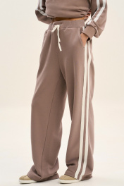 Трендовые и очень удобные брюки от GO станут для вас любимыми на долгое время! • по 2 лампаса из белой тесьмы на боковом шве • комфортная посадка • пояс из кашкорсе с резинкой и шнуром • удобные боковые карманы на передних половинках Длина брюк по боковому шву с поясом: 102-104 см. Полуобхват бедер брюк: 42 р - 48 см, 44 р - 50 см, 46 р. - 52 см, 48 р. - 54 см, 50 р. - 56 см, 52 р. - 58 см, 54 р - 60 см