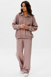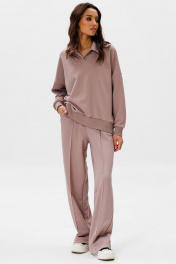 Для очаровательного образа не хватает воротничка! Воротник - маленькая деталь, которая «смягчает» и делает нежным весь аутфит. Брюки со стрелками добавят образу строгости и деловитости, что позволит носить костюм как на прогулки, так и в офис. Свитшот: отложной воротник свободный силуэт вышивка-логотип в цвет ткани на левой стороне переда манжеты рукавов и низ свитшота из ткани кашкорсе Брюки: прямой силуэт удобные карманы стрелки по переду зафиксированы строчкой пояс из ткани кашкорсе с резинкой и шнуром Длина свитшота по спинке 65-68 см. Длина рукава свитшота с плечом: 69-71 см для роста 164-170 см, 72-74 см для роста 170-176 см. Полуобхват груди свитшота: 42 р - 66 см, 44 р - 68 см, 46 р - 70 см, 48 р - 72 см, 50 р - 74 см, 52 р - 76 см. Длина брюк по боковому шву с поясом: 102-104 см для роста 164-170 см, 105-107 см для роста 170-176 см. Полуобхват бедер брюк: 42 р - 48 см, 44 р - 50 см, 46 р. - 52 см, 48 р. - 54 см, 50 р. - 56 см, 52 р. - 58 см.
