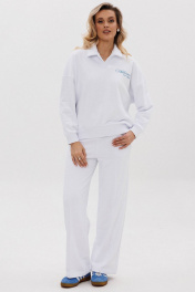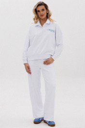 Для очаровательного образа не хватает воротничка! Воротник — маленькая деталь, которая «смягчает» и делает нежным весь аутфит. Брюки со стрелками добавят образу строгости и деловитости, что позволит носить костюм как на прогулки, так и в офис. Свитшот: - отложной воротник - свободный силуэт - контрастная печать на левой стороне переда - манжеты рукавов и низ свитшота из ткани кашкорсе Брюки: - прямой силуэт - удобные карманы - стрелки по переду зафиксированы строчкой - пояс из ткани кашкорсе с резинкой и шнуром Длина свитшота по спинке 65-68 см. Длина рукава свитшота с плечом: 69-71 см для роста 164-170 см, 72-74 см для роста 170-176 см. Полуобхват груди свитшота: 42 р. - 66 см, 44 р. - 68 см, 46 р. - 70 см, 48 р. - 72 см, 50 р. - 74 см, 52 р. - 76 см. Длина брюк по боковому шву с поясом: 102-104 см для роста 164-170 см, 105-107 см для роста 170-176 см. Полуобхват бедер брюк: 42 р. - 48 см, 44 р. - 50 см, 46 р. - 52 см, 48 р. - 54 см, 50 р. - 56 см, 52 р. - 58 см.