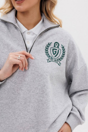 Женский яркий, повседневный костюм, состоящий из оверсайз свитшота с контрастной вышивкой и брюк со стрелками. Это находка для тех, кто ценит свободу, стиль и не хочет отказывать себе в комфорте 24/7. Свитшот: дизайнерская вышивка свободный силуэт короткая застежка - молния манжеты рукавов, стойка и низ свитшота из ткани кашкорсе Брюки: прямой силуэт удобные карманы стрелки по переду зафиксированы строчкой пояс из ткани кашкорсе с резинкой и шнуром Длина свитшота по спинке 64-67 см. Длина рукава свитшота с плечом: 69-71 см для роста 164-170 см, 72-74 см для роста 170-176 см. Полуобхват груди свитшота: 42 р - 64 см, 44 р - 66 см, 46 р - 68 см, 48 р - 70 см, 50 р - 72 см, 52 р - 74 см. Длина брюк по боковому шву с поясом: 102-104 см для роста 164-170 см, 105-107 см для роста 170-176 см. Полуобхват бедер брюк: 42 р - 48 см, 44 р - 50 см, 46 р. - 52 см, 48 р. - 54 см, 50 р. - 56 см, 52 р. - 58 см.