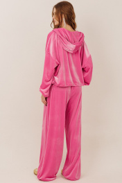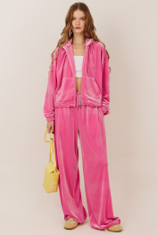 Один из хитов сезона в коллекции от GO - шикарный велюровый костюм! Худи на молнии вместе с широкими брюками - лучшее решение для Вас! Худи: два размера - 42-44, 46-48 р металлическая молния по переду свободное облегание удобные карманы кенгуру комфортный капюшон низ худи на регулируемой резинке Брюки: комфортная посадка пояс прошивной с резинкой и шнуром удобные боковые карманы на передних половинках низ брюк на регулируемой резинке Длина худи по спинке от горловины: 51-53 см Длина рукава худи с плечом от горловины: 79-81 см для роста 170-176 см; Полуобхват груди худи: 42-44 р - 64 см, 46-48 р - 72 см Длина брюк по боковому шву с поясом: 107-110 см для роста 170-176 см Полуобхват бедер брюк: 42-44 р - 58 см, 46-48 р - 62 см