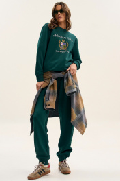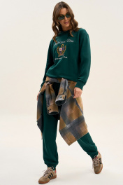 Женский спортивный костюм со свитшотом - отлично подойдет для офиса, прогулок, активного времяпровождения, а также корпоративных мероприятий и тимбилдинга. Свитшот: • классический крой и облегание • контрастная дизайнерская вышивка • манжеты, горловина, низ свитшота из ткани компаньона кашкорсе Брюки: • классический крой и облегание • манжеты и пояс - из ткани компаньона кашкорсе • удобные карманы на передних половинках • пояс с резинкой и шнуром внутри Длина свитшота по центру спинки: 63-67 см. Длина рукава: 55-57 см. Полуобхват груди свитшота: 42 р - 50 см, 44 р - 52 см, 46 р. - 54 см, 48 р. - 56 см, 50 р - 58 см, 52 р - 60 см, 54 р - 62 см, 56 р - 64 см. Длина брюк по боковому шву с поясом: 103-105 см. Полуобхват бедер брюк: 42 р - 48 см, 44 р - 50 см, 46 р. - 52 см, 48 р. - 54 см, 50 р. - 56 см, 52 р - 58 см, 54 р - 60 см, 56 р - 62 см
