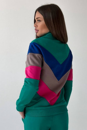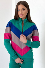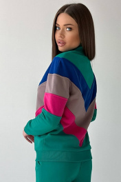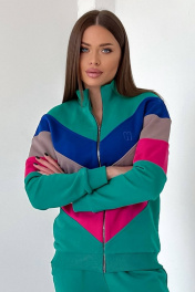 Женский трендовый джемпера на молнии, пошит из комфортной, всесезонной ткани. Джемпер с дизайнерскими, наклонными резами и на переде, и на спинке, выполненных из разных контрастных оттенков. Рукава имеют манжеты. Воротник-стойка, манжеты, низ джемпера выполнены из ткани-компаньена кашкорсе. На левом переде вышит логотип в цвет полоски. Длина свитшота по спинке: 65-67 см для роста 164-170 см, 67-69 см для роста 170-176 см. Длина рукава от горловины: 71-73 см для роста 164-170 см, 73-75 см для роста 170-176 см. Полуобхват груди: 42 р. - 51 см, 44 р. - 53 см, 46 р. - 55 см, 48 р. - 57 см, 50 р. – 59 см, 52 р. – 61 см.