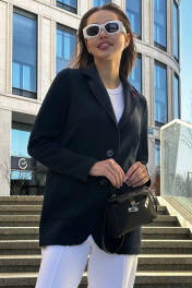 Жакет Gowear из футера в стиле smart casual поможет создать в меру строгий и одновременно расслабленный образ. Жакет составит беспроигрышную комбинацию с платьями, юбками и брюками. Жакет прямого силуэта с воротником и лацканами, имеет удобные карманы и застежку на 2 пуговицы. На левом лацкане вышивка-логотип в контрастном цвете. Низ и борта имеют открытые края (эффект необработанного шва), укреплены дополнительной строчкой. Жакет без подкладки. Длина жакета по спинке 72-74 см. Длина рукава жакета: 60-62 см для роста 164-170 см, 62-64 см для роста 170-176 см. Полуобхват груди жакета: 42 р - 48 см, 44 р - 50 см, 46 р. - 52 см, 48 р. - 54 см, 50 р. - 56 см, 52 р - 58 см.