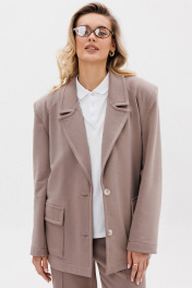 Oversize бежевый жакет с широкими плечами из трикотажа GO F4105/04-03. 170-176