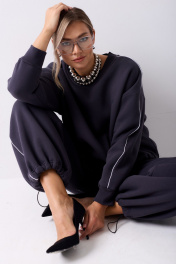 Этот джемпер станет для тебя лучшим другом и согреет даже в самый холодный осенний вечер. При этом ты будешь выглядеть стильно и модно, и собирать взгляды окружающих. Свитшот: ● два размера 42-44 и 46-48 ● горловина и манжеты из кашкорсе ● вышивка в цвет с левой стороны переда ● контрастный кант от горловины до манжеты ● низ на регулируемой резинке ● ткань - комфортный футер начес Длина свитшота по спинке: 52 см для роста 170-176 Длина рукава от горловины: 71-73 см Полуобхват груди свитшота: 42-44 р- 66 см, 46-48р - 100 см