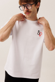 Футболка оверсайз от GOwear станет отличной базой в вашем гардеробе! Футболка: оверсайз покрой дизайнерская печать на переде ткань 2-нитка френч-терри Длина футболки по спинке: 68-74 см Длина рукава в футболке: 23-26 см Полуобхват груди в футболке: 46 р - 52 см, 48 р - 54 см, 50 р - 56 см, 52 р - 58 см, 54 р - 60 см, 56 р - 62 см, 58 р - 64 см