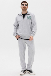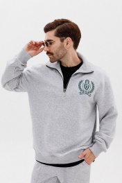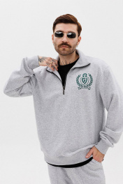 Серый джемпер из трикотажа с вышивкой и молнией GO M4077/50-04. 182-188