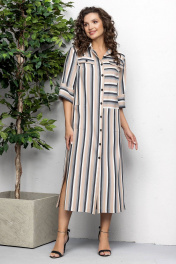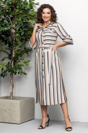 Летнее рубашечное платье из полоски с поясом Gold Style 2620