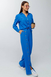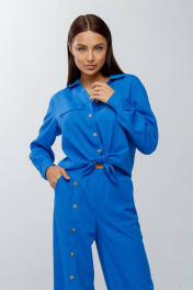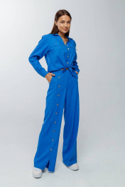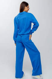 Летний льняной костюм: брюки на резинке и рубашка на пуговицах Gold Style 2626 голубой