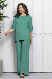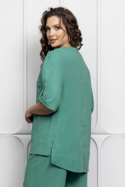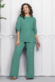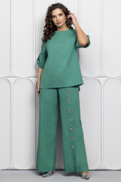 Зеленый льняной костюм: блуза и брюки для летнего стиля Gold Style 2627 изумрудный