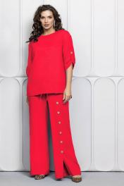 Красный костюм из льна: блуза и брюки для летних дней Gold Style 2627 красный