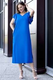 Платье бохо из льна, с карманами и разрезом по боку Gold Style 2652 электрик