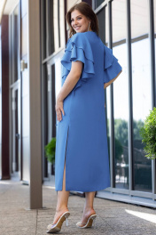 Платье миди с разрезом и брошью для особых случаев Gold Style 2659 синий