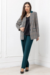 Трендовый брючный костюм в стиле «Dandy» от белорусского бренда ГолдСтайл станет идеальной основой для создания капсульного гардероба женщин и девушек «plus size». Современная интерпретация и новый взгляд на понятие классики, cочетание классической клетки с ярким однотом добавят красок в офисные будни. Пиджак прямого силуэта с отрезными бочками и легким приталиванием отлично подойдет к любому стилю одежды, а также скроет все недостатки. Базовая модель с V-образным вырезом и воротником пиджачного типа на основе классического мужского костюма, застегивается на две пуговицы. Перед оформлен вертикальными вытачками до входа в прорезной карман (карманы функциональные с клапаном и двумя обтачками). Спинка цельная с отрезными бочками. Втачные рукава можно легко подвернуть что добавляет удобства и практичности. Пиджак на подкладке. Зауженные брюки со стрелками и косыми карманами вне трендов и сезонов, они подойдут к любому стилю одежды. Брюки средней посадки с отрезным поясом и косыми карманами слегка заужены к низу. Пояс с резинкой по спинке сзади обеспечивает идеальную посадку на любую фигуру и талию. Отрезной пояс выполнен со шлевками для ремня, что очень удобно и практично. Застежка в поясе обработана по классической итальянской технологии петля-пуговица и гульфик с молнией. Белорусский бренд ГолдСтайл - гарантия отличного качества. Мы с трепетом и любовью относимся к созданию наших моделей для того чтобы они радовали Вас каждый день