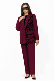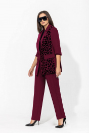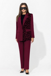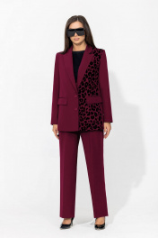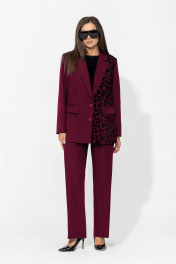 Брючный костюм с анималистичным принтом и классическим пиджаком Gold Style 2675 бордо