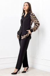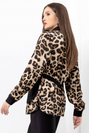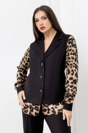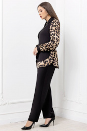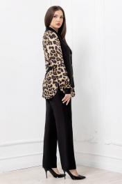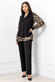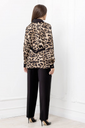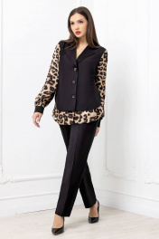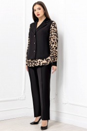 Стильный брючный комплект имитация «блузка-жилет» с трендовым леопардом от белорусского бренда ГолдСтайл подчеркнёт вашу яркую индивидуальность и тонкий вкус. Данная модель выполнена из однотонной костюмной ткани высокого качества в сочетании с трендовым леопардовым принтом. Костюм состоит из блузки «имитация двойки» и брюк средней посадки. Блузка-жилет прямого силуэта с воротником пиджачного типа и центральной застежкой на петли и пуговицы. Перед выполнен имитацией однотонного жилета одетого поверх леопардовой блузки, спинка из леопарда с хлястиками, вставленными в боковые швы. Низ блузки оформлен плавной фигурной линией с разрезами по бокам. Рукава втачные с манжетами. Стильные итальянские пуговицы в тон леопарда завершают весь образ. Трендовые брюки с косыми карманами и отрезным поясом на резинке, пояс на резинке вкруговую. Современная интерпретация и новый взгляд на понятие классики, станет идеальной основой для создания капсульного гардероба женщин и девушек «plus size». Многофункциональный комплект позволит создать разнообразие луков, предметы капсулы легко сочетать с другими вещами создавая стильные и современные образы, подходит для шпилек и обуви на плоском ходу. Подойдет обладательницам пышных форм plus size, которые хотят выглядеть стильно и модно. Выгодно подчеркивает достоинства фигуры и скрывает недостатки. Брючный костюм с леопардовой отделкой must-have для современной женщины. Белорусский бренд ГолдСтайл - гарантия отличного качества. Мы с трепетом и любовью относимся к созданию наших моделей для того чтобы они радовали Вас каждый день.