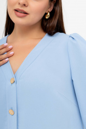 Представляем стильную блузу от ГолдСтайл, которая станет идеальным дополнением вашего гардероба! Эта блуза создана для женщин, ценящих комфорт и элегантность. Модель выполнена из приятной на ощупь ткани с добавлением вискозы, нейлона и эластана, что обеспечивает мягкость и свободу движений. Классический V-образный вырез и прямой покрой подчеркнут вашу фигуру, а рукава с разрезами добавят образу изюминку. Блуза украшена центральной застежкой на стильных металлических пуговицах, подчеркивающих ее изысканный стиль. Итальянская фурнитура придает блузе особый шарм и долговечность. Эта универсальная модель подойдет как для офиса, так и для праздничных мероприятий. Выбирайте свой любимый оттенок из богатой палитры: голубой, серо-голубой или светлый серо-голубой. Создавайте модные образы с этой блузой и будьте в тренде!