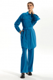 Описание внешнего вида: блузон с втачным воротником с отрезной стойкой, центральной застежкой на петли и пуговицы. На уровне линии груди расположены накладные карманы с клапанами. Линия низа фигурная. Спинка с отрезной кокеткой, встречной складкой по шву притачивания кокетки. Рукав втачной, длинный, с отрезной манжетой. Блузон со съемным поясом. Силуэт: прямой Вид покроя рукава:.втачной, длинный Цветовая гамма для верха, подкладки, фурнитуры, отделки: блузон из ткани в одной цветовой гамме.