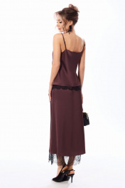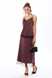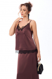 Топ на бретелях с регуляторами, с фигурным вырезом горловины. По переду с отрезными чашками. Горловина переда и низ топа декорированы кружевом.