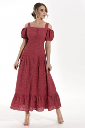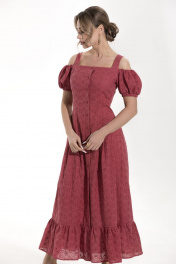 Платье короткое из хлопка с рельефами и сборками Golden Valley 4826 красный