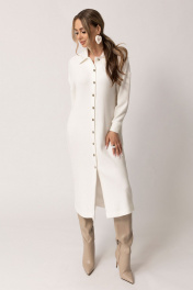 Платье прямого силуэта с воротником и пуговицами из вискозы Golden Valley 4947-1 молочный