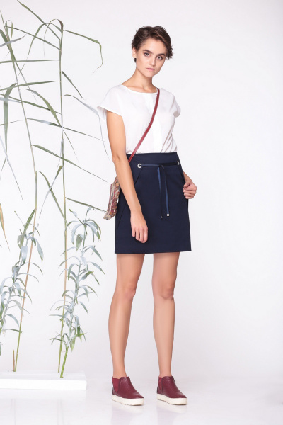 Юбка на обтачке с люверсами и вставками из текстиля Golden Valley 5022 темно-синий