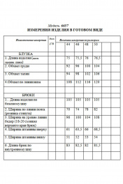 Блузка с центральной застежкой на петли и пуговицы по планке переда. Воротник втачной с отрезной стойкой. По переду- вставка. Спинка со средним швом. Рукав -крылышко. Брюки- с отрезным поясом. Пояс присборен на резинку в области спинки. По боковым швам расположены карманы. Вход в карман наклонный к боковому шву. На передних половинках- односторонние складки.