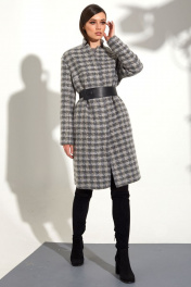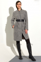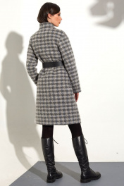 Демисезонное пальто с геометричным рисунком и съемным поясом Golden Valley 7107 серая_клетка